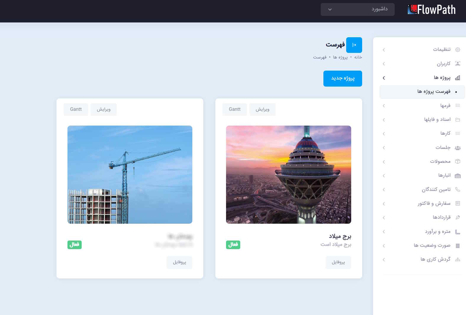 پروژه ها دارای صفحه پروفایلی هست که خلاصه اتفاقات هر پروژه به شکل گزارش و دسترسی به همه ی اجزای مختلف در آنجا خلاصه می شود.